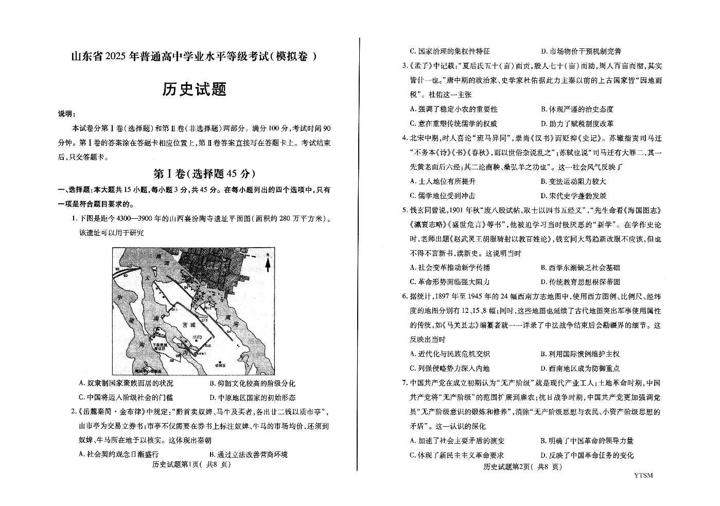 山东省烟台市2024-2025学年下学期5月高三三模考试历史