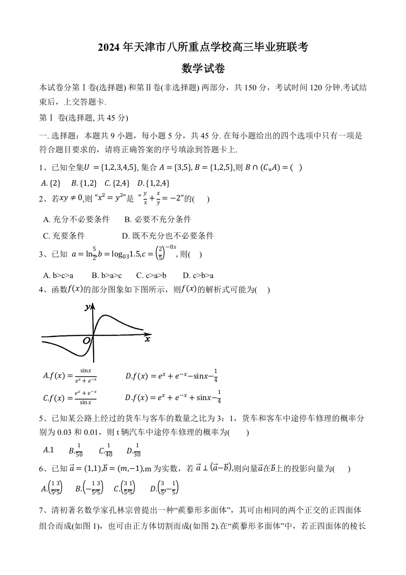 天津市八所重点学校2024届高三上学期期末联考数学
