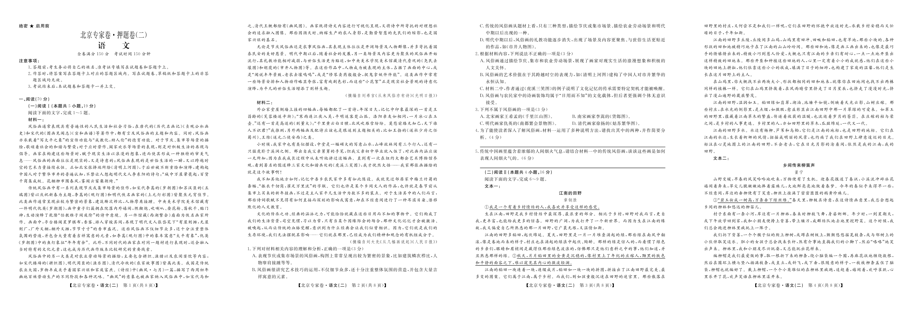 四川省区域2025届5月高三北京专家卷·押题卷(二)语文