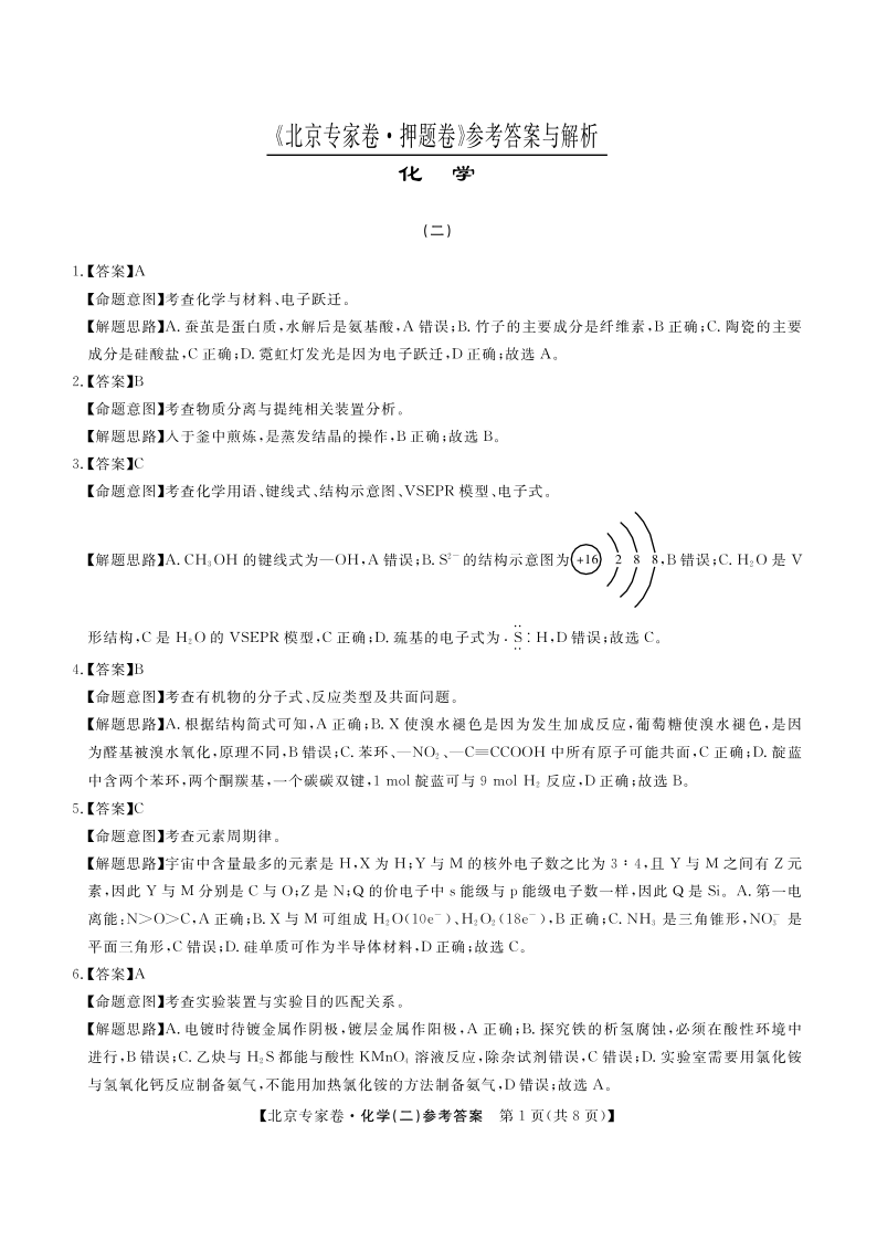 四川省区域2025届5月高三北京专家卷·押题卷(二)化学答案