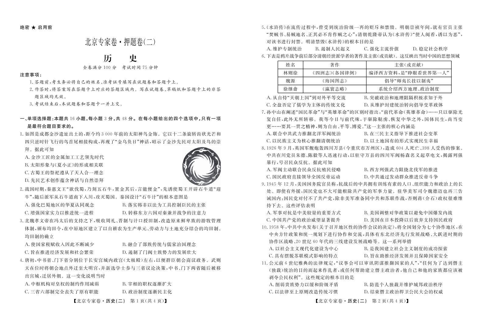 四川省区域2025届5月高三北京专家卷·押题卷(二)历史