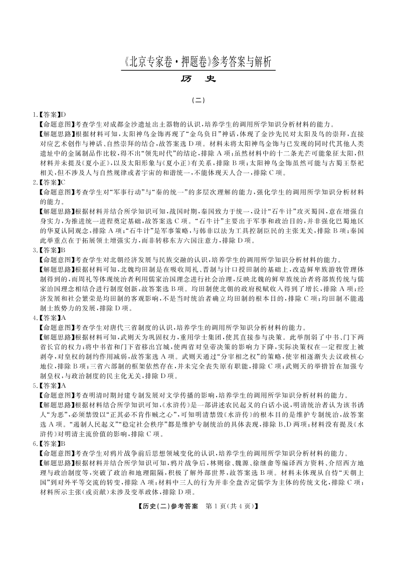 四川省区域2025届5月高三北京专家卷·押题卷(二)历史答案