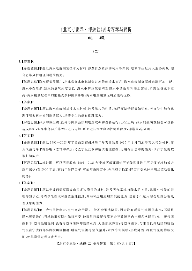 四川省区域2025届5月高三北京专家卷·押题卷(二)地理答案