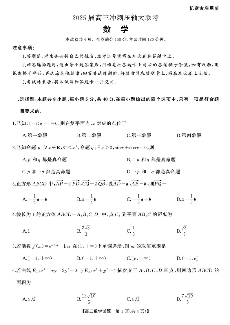 湖南省区域高中2025届下学期5月高三冲刺压轴联考数学+答案
