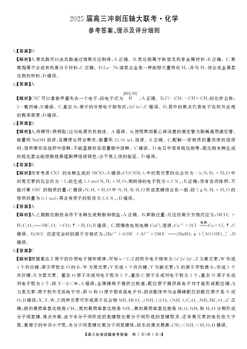 湖南省区域高中2025届下学期5月高三冲刺压轴联考化学+答案
