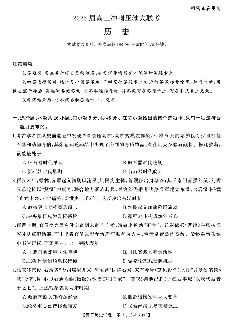 湖南省区域高中2025届下学期5月高三冲刺压轴联考历史+答案