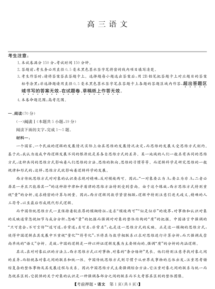 安徽省区域高中盟2025届下学期5月高三考前押题语文
