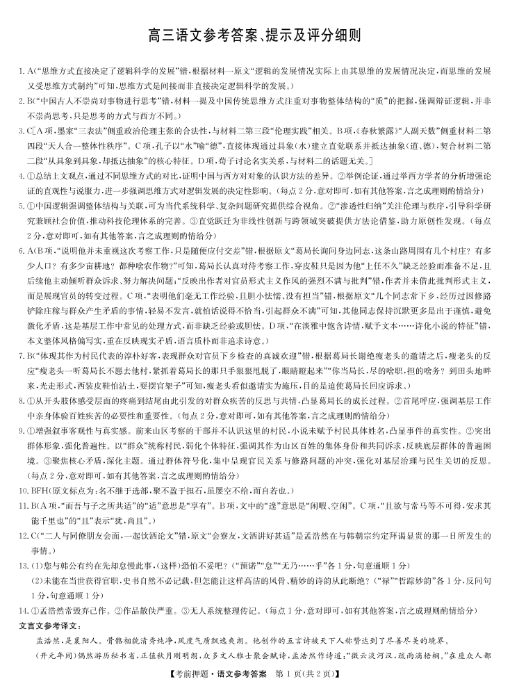安徽省区域高中盟2025届下学期5月高三考前押题语文答案