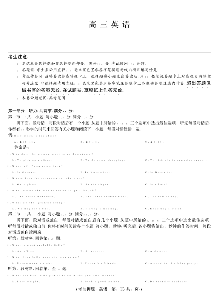安徽省区域高中盟2025届下学期5月高三考前押题英语