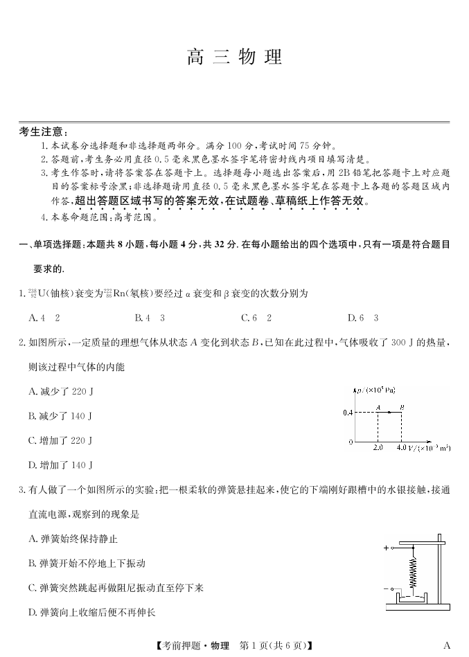 安徽省区域高中盟2025届下学期5月高三考前押题物理