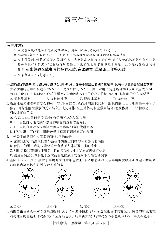安徽省区域高中盟2025届下学期5月高三考前押题生物