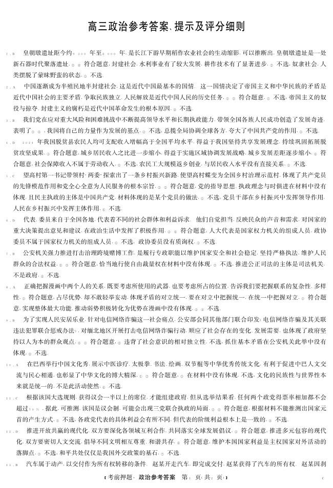 安徽省区域高中盟2025届下学期5月高三考前押题政治答案