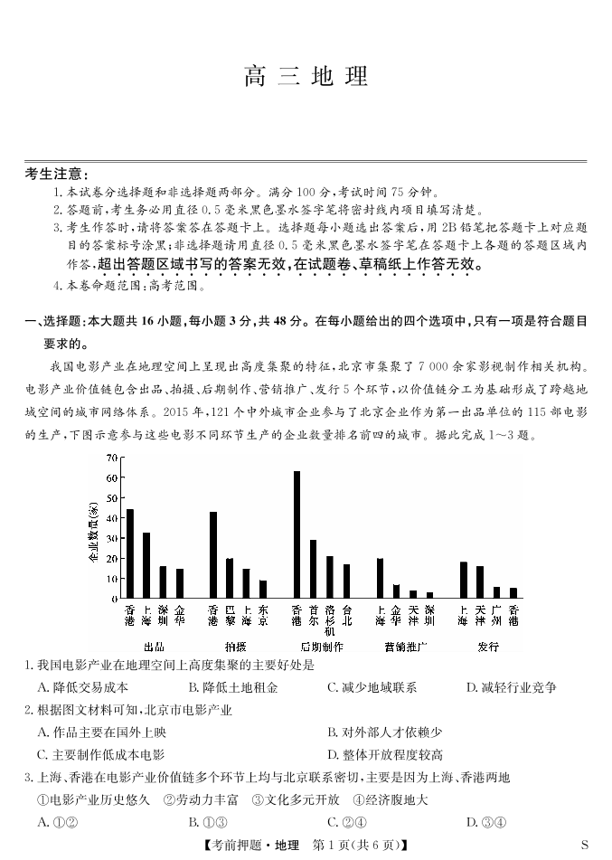 安徽省区域高中盟2025届下学期5月高三考前押题地理
