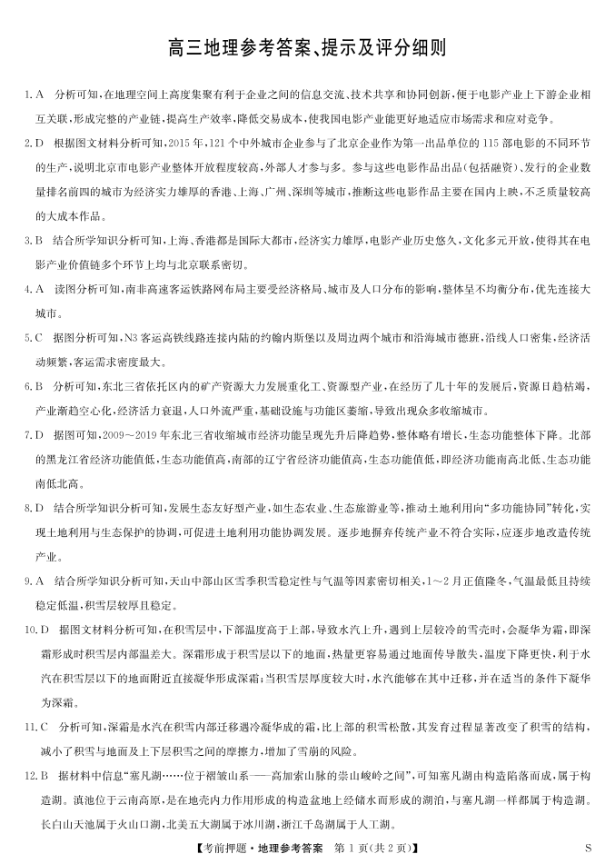 安徽省区域高中盟2025届下学期5月高三考前押题地理答案