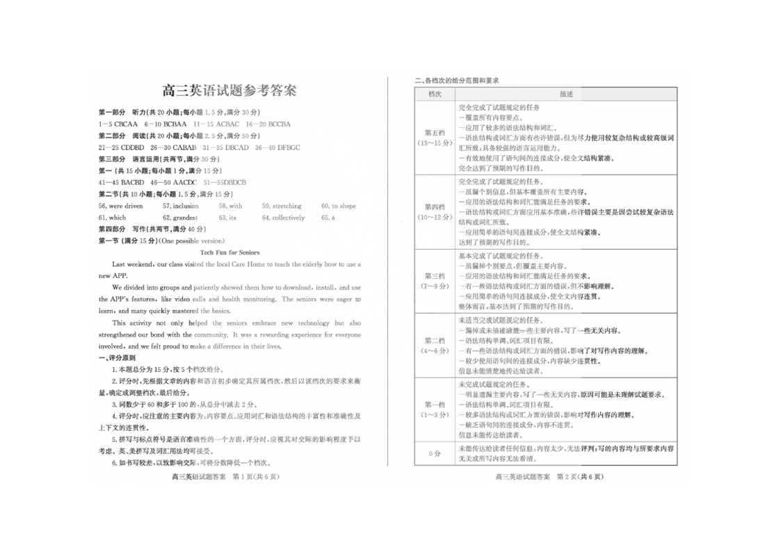 山东省德州市2025届5月高三第三次适应性检测英语答案