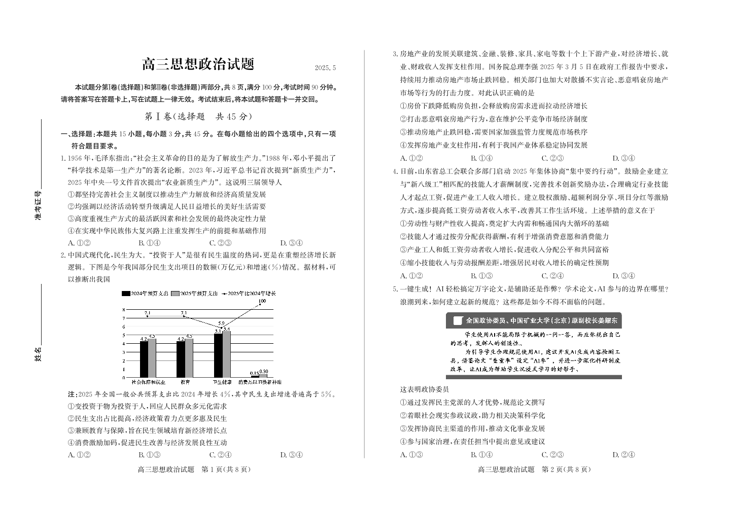山东省德州市2025届5月高三第三次适应性检测政治