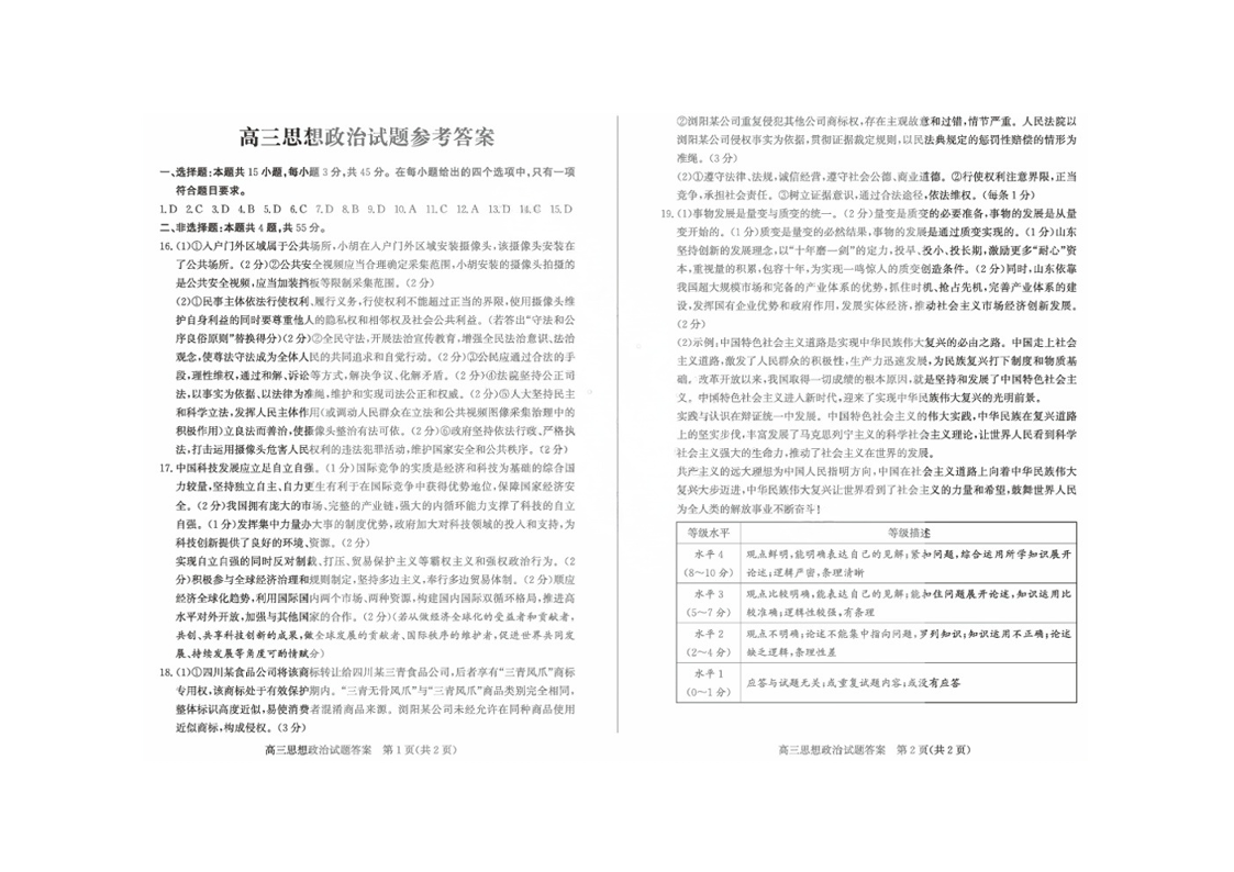 山东省德州市2025届5月高三第三次适应性检测政治答案