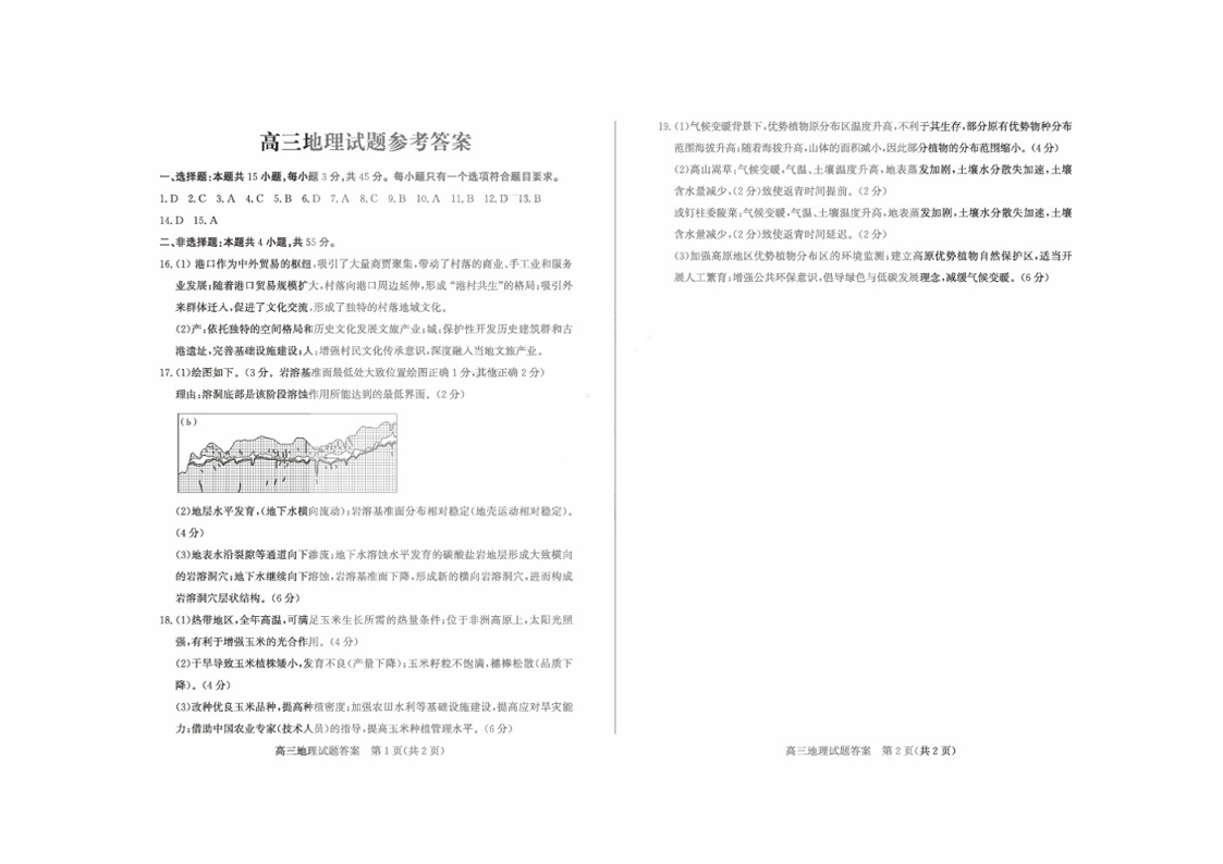 山东省德州市2025届5月高三第三次适应性检测地理答案