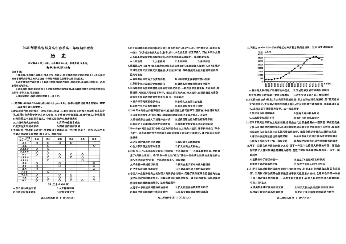 湖北省黄冈市十五校2024-2025学年下学期4月高二期中联考历史+答案