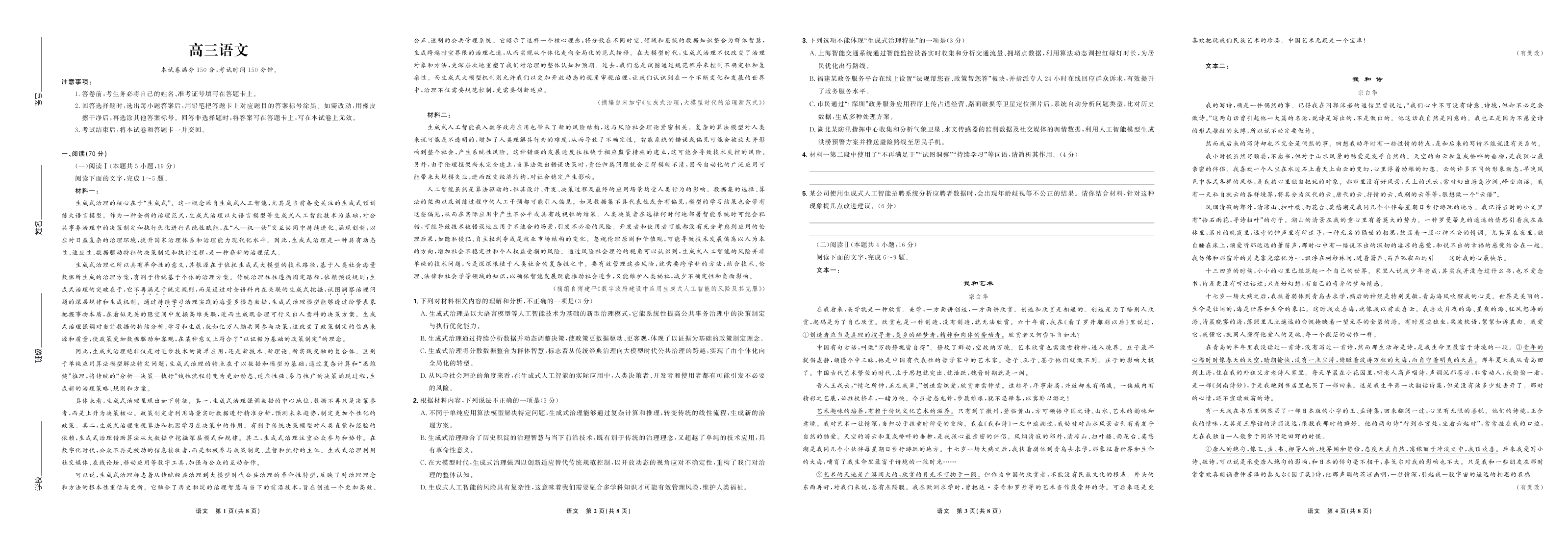 东北三省精准教学联盟2025届下学期5月高三联考语文