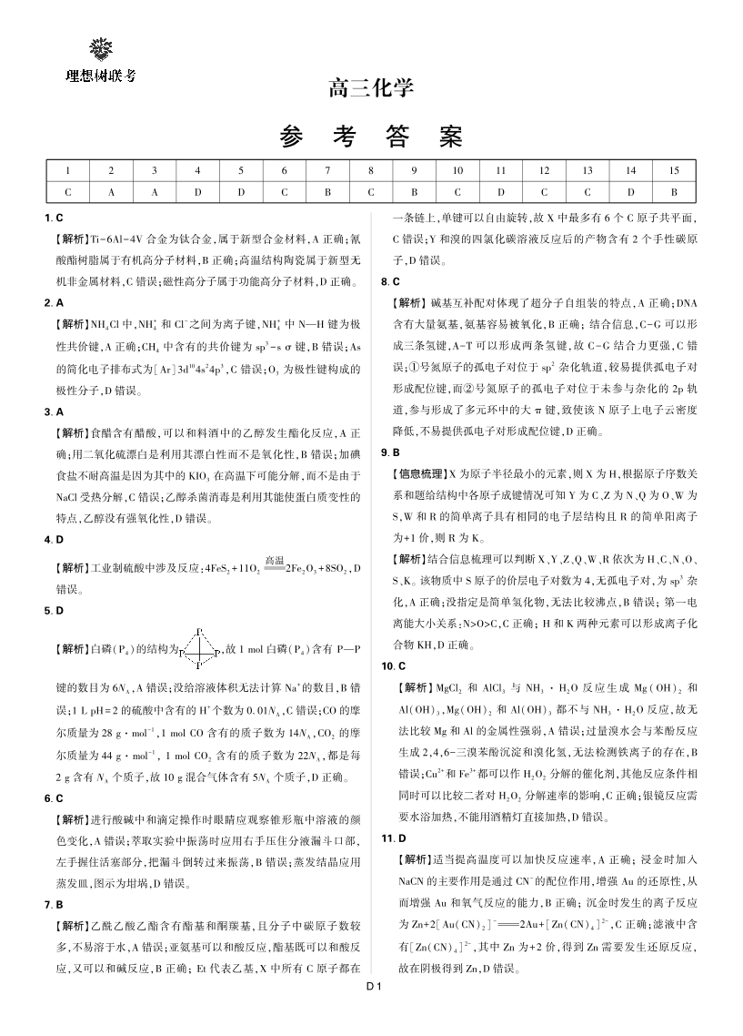 东北三省精准教学联盟2025届下学期5月高三联考化学答案