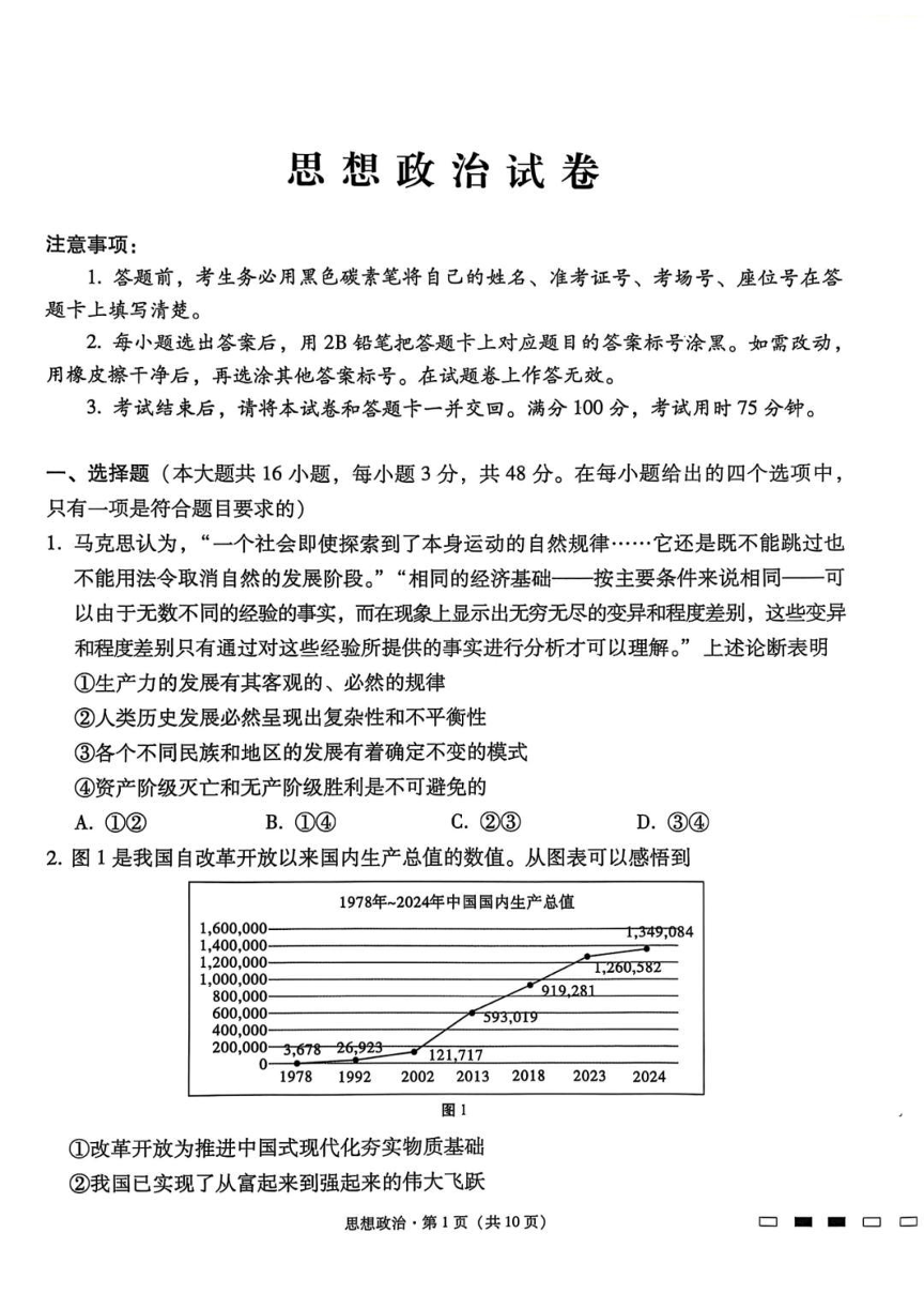 贵州省贵阳第一中学2025届高考适应性月考卷(八)政治