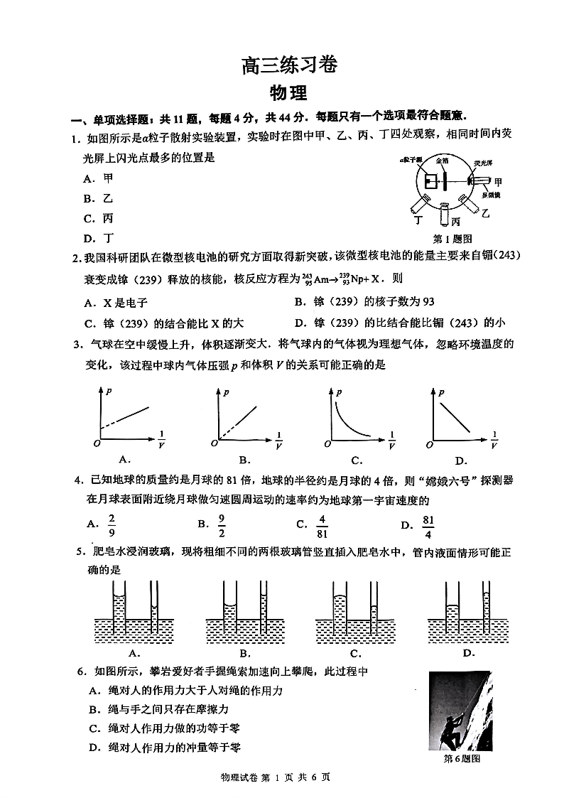 江苏省南通市2025届下学期5月高三四模练习卷物理+答案