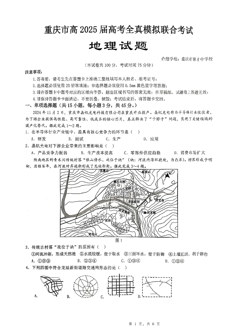 重庆市育才中学高2025届高考全真模拟联合考试地理