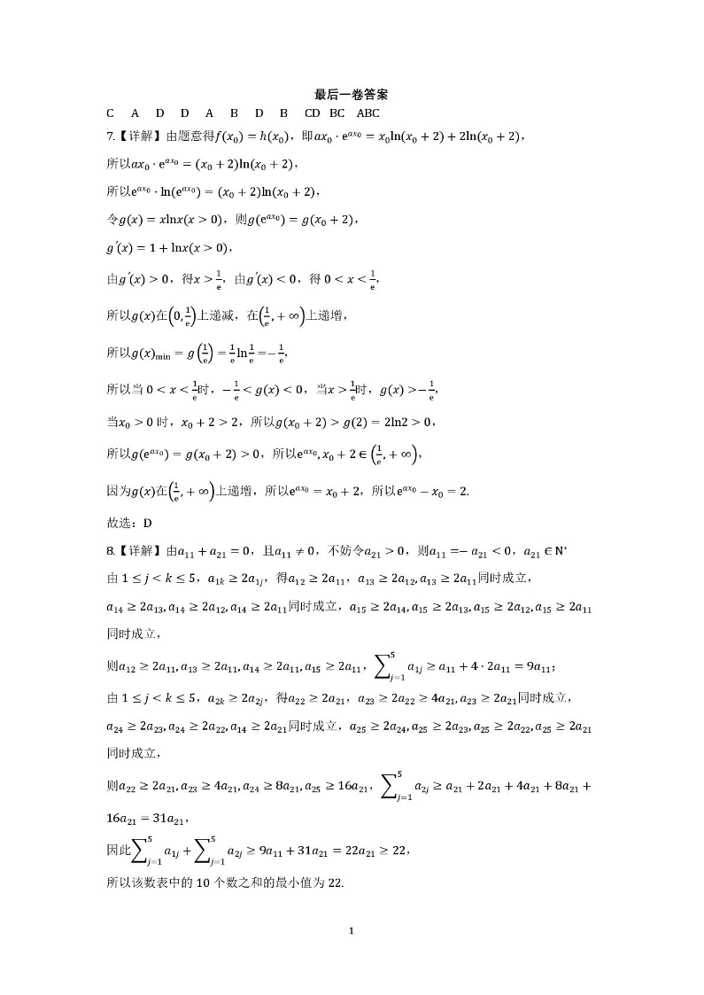 重庆一中 2025 届高考适应性考试最后一卷(全真模拟)数学答案
