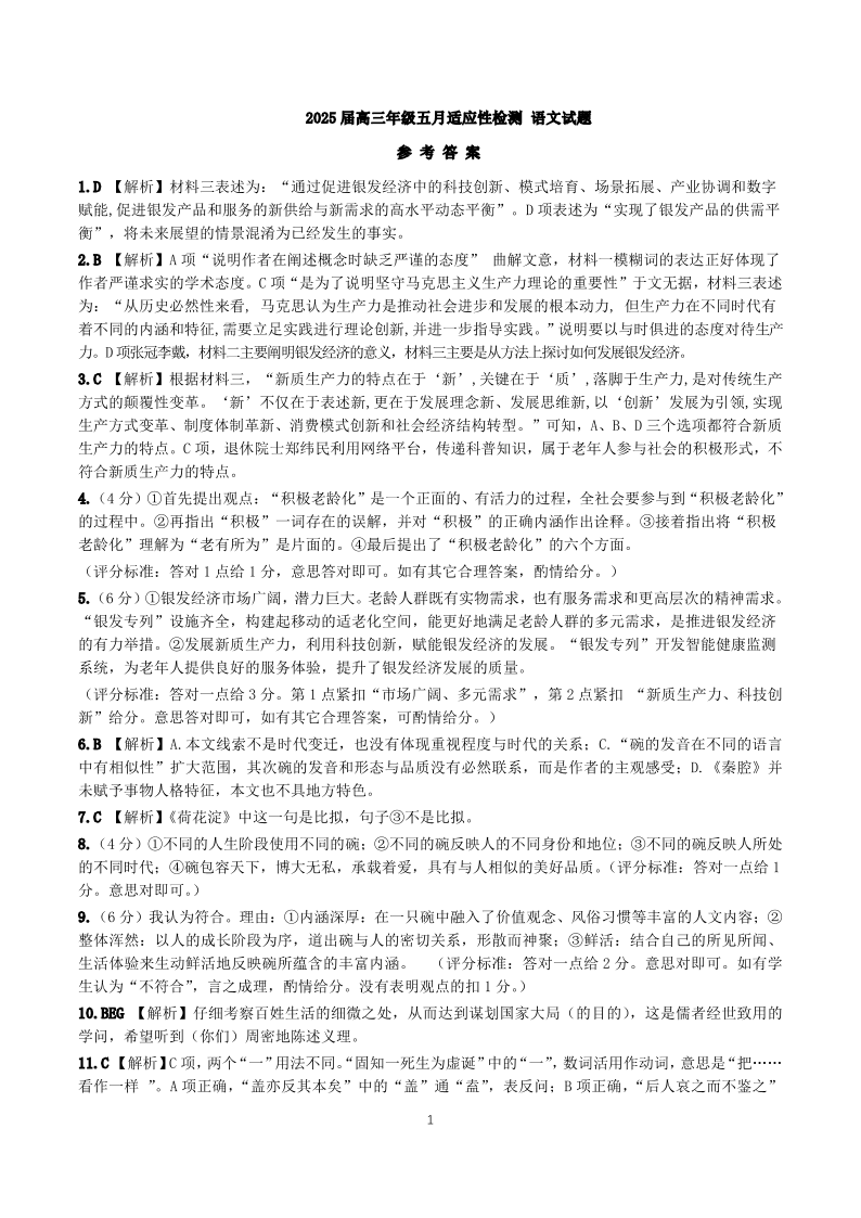 湖北省华范大一附中2025届下学期五月高三适应性检测语文答案