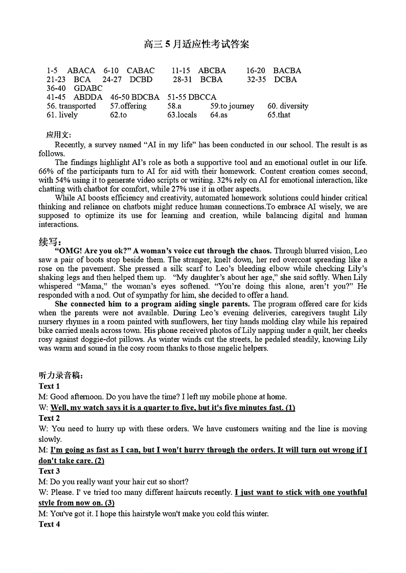 湖北省华范大一附中2025届下学期五月高三适应性检测英语答案