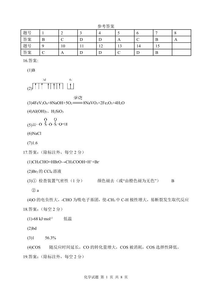 湖北省华范大一附中2025届下学期五月高三适应性检测化学答案
