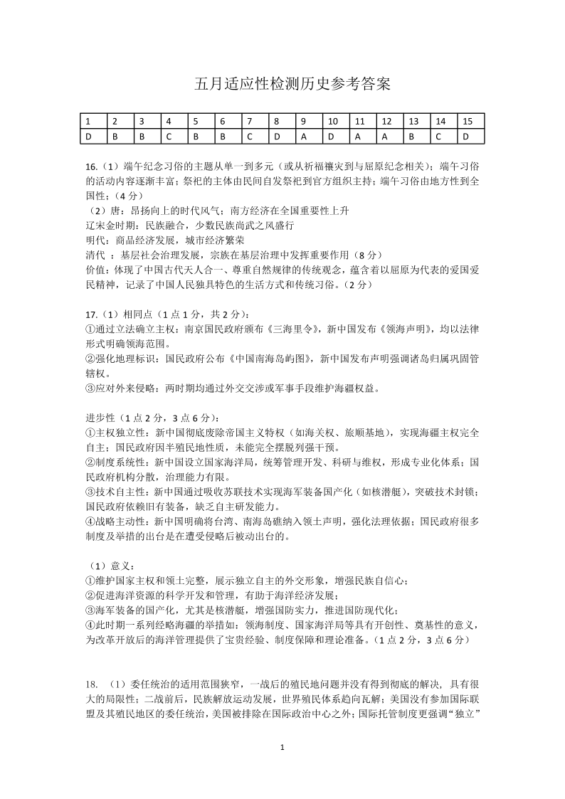湖北省华范大一附中2025届下学期五月高三适应性检测历史答案