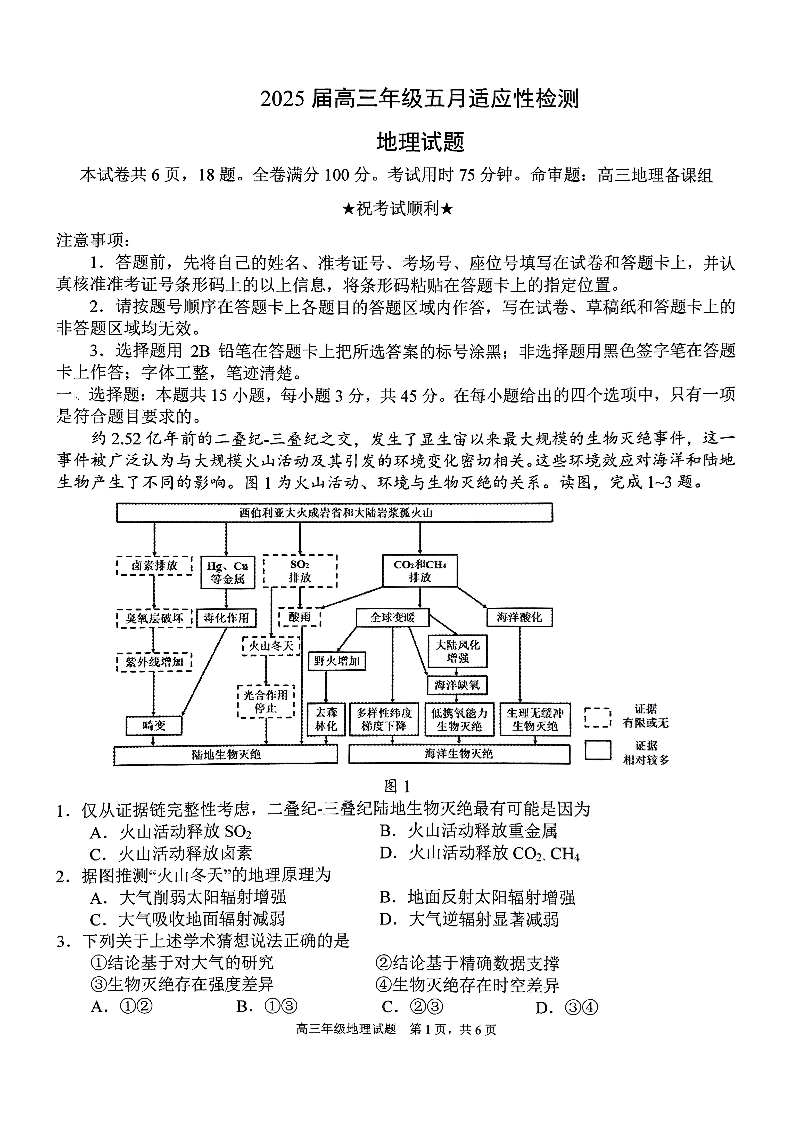 湖北省华范大一附中2025届下学期五月高三适应性检测地理