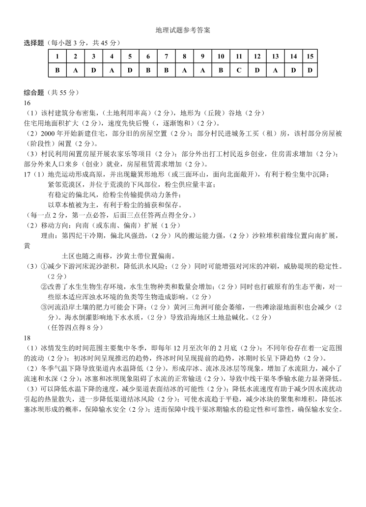 湖北省华范大一附中2025届下学期五月高三适应性检测地理答案