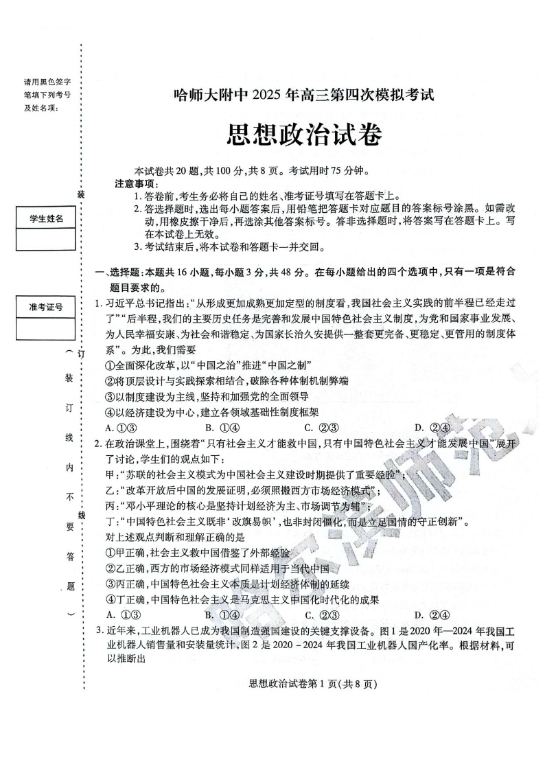 黑龙江省哈师大附中2025届高三第四次模拟考试政治+答案
