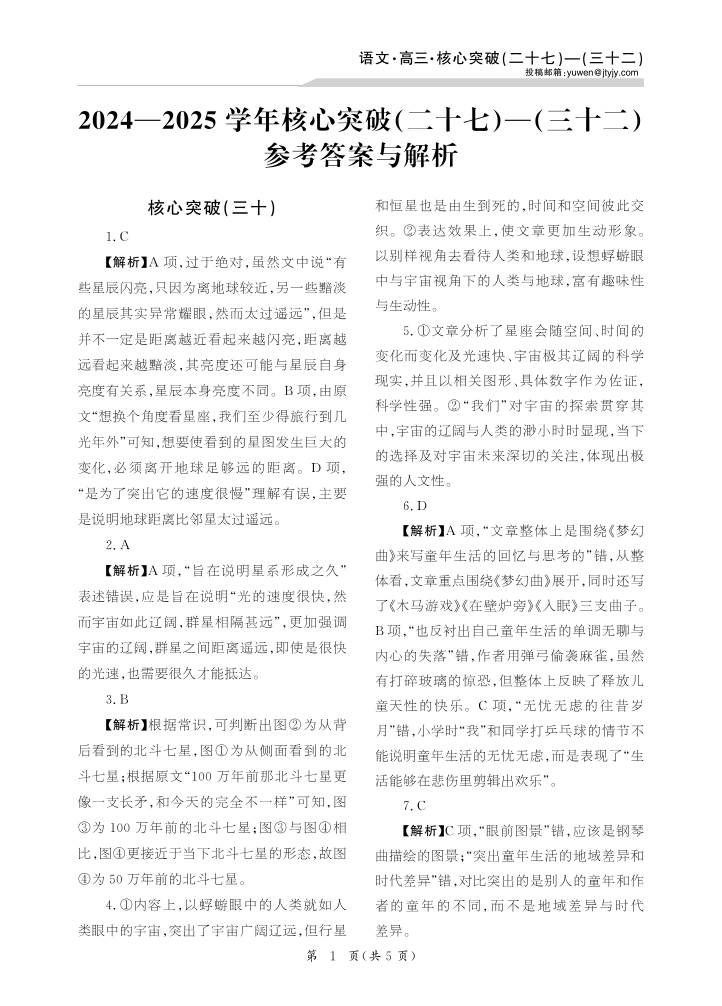 云南省曲靖一中2025届高考决胜全真模拟卷(二)语文答案