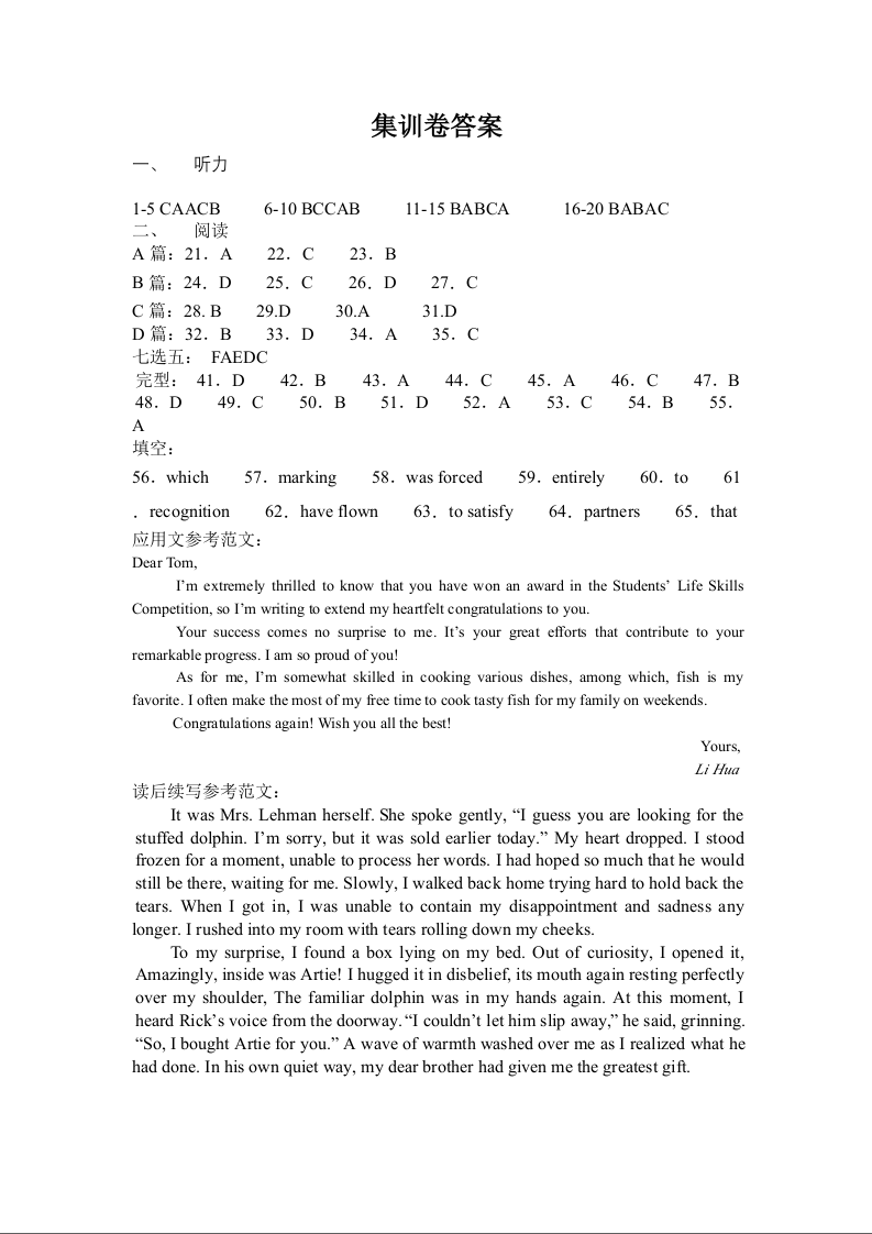 云南省曲靖一中2025届高考决胜全真模拟卷(二)英语答案