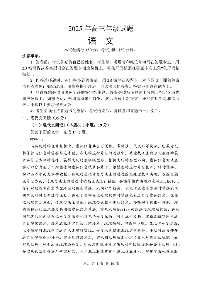 江苏省徐州市2025届下学期5月高三打靶卷语文