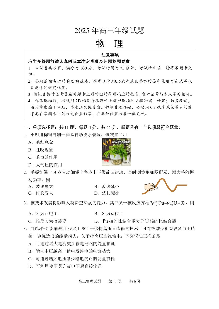江苏省徐州市2025届下学期5月高三打靶卷物理