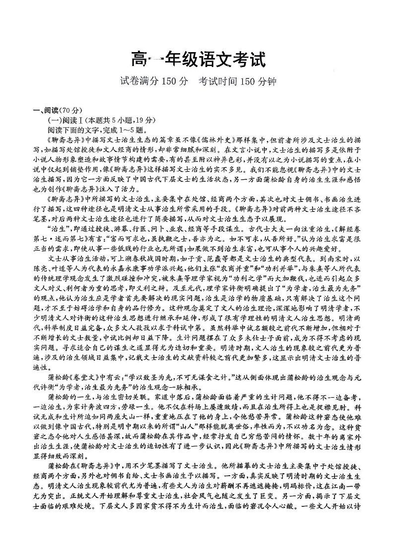河北省保定市六校协作体2024-2025学年下学期5月高一期中语文