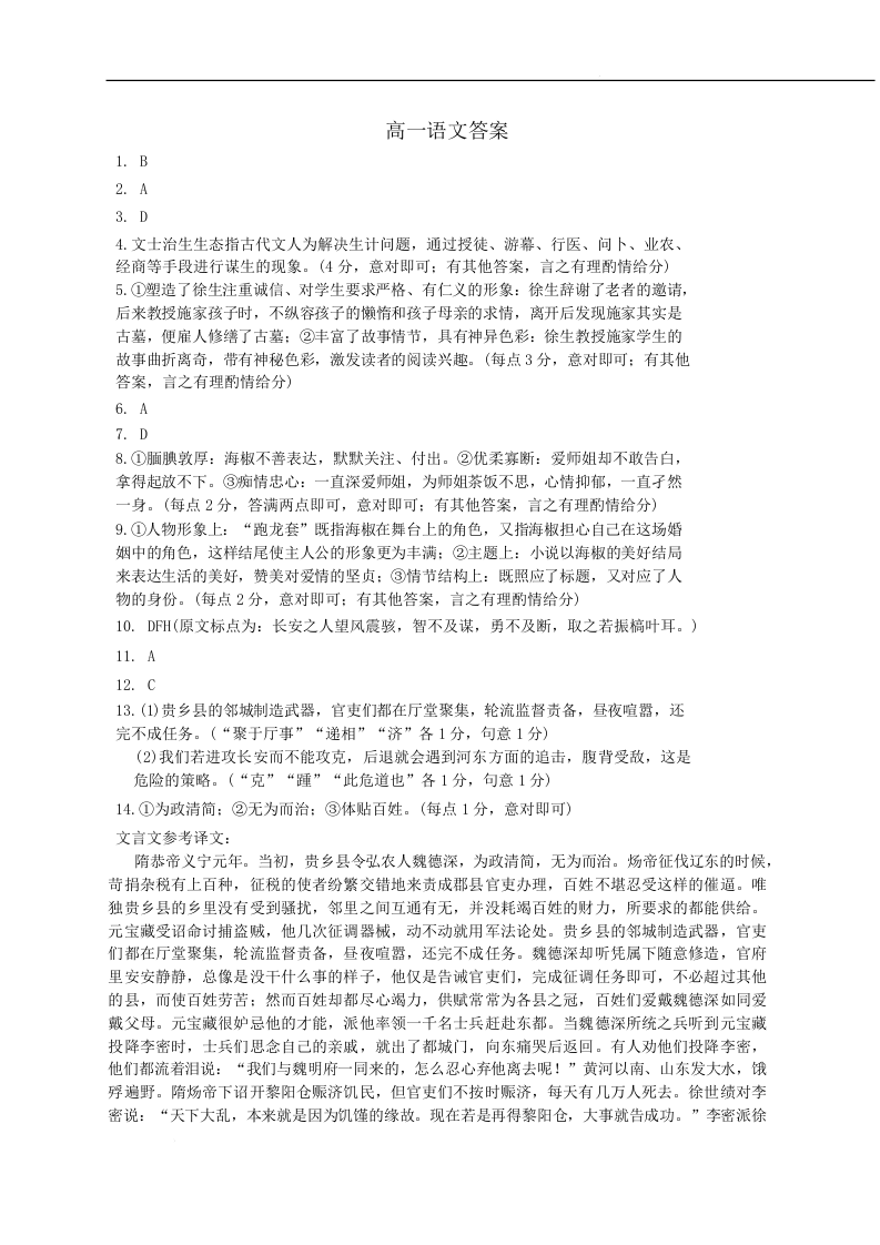 河北省保定市六校协作体2024-2025学年下学期5月高一期中语文答案