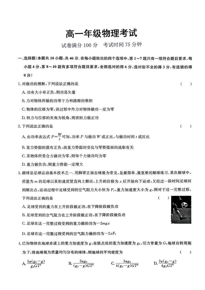 河北省保定市六校协作体2024-2025学年下学期5月高一期中物理