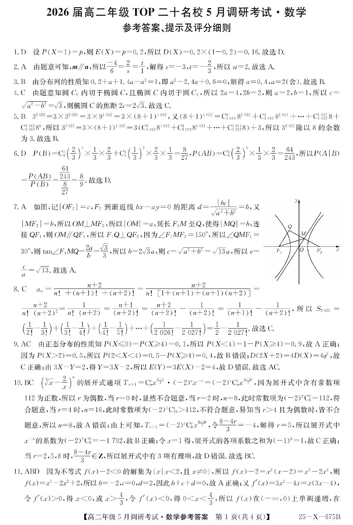 河南省TOP二十名校2024-2025学年下学期5月高二调研考试数学答案