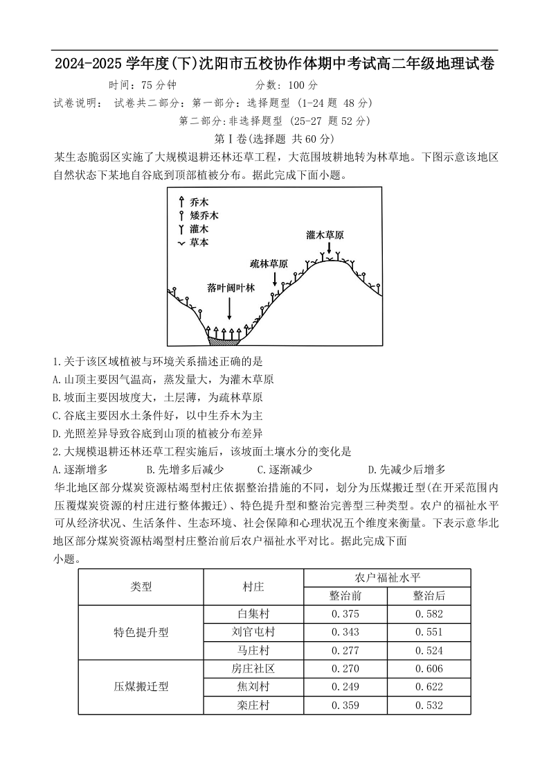 辽宁省沈阳市五校协作体2024-2025学年下学期高二期中考试地理