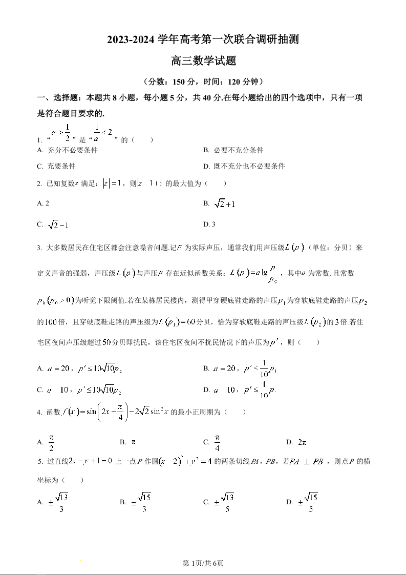 重庆市乌江2024届新高考协作体高三上学期第一次联合调研抽测(一模)数学(原卷版)