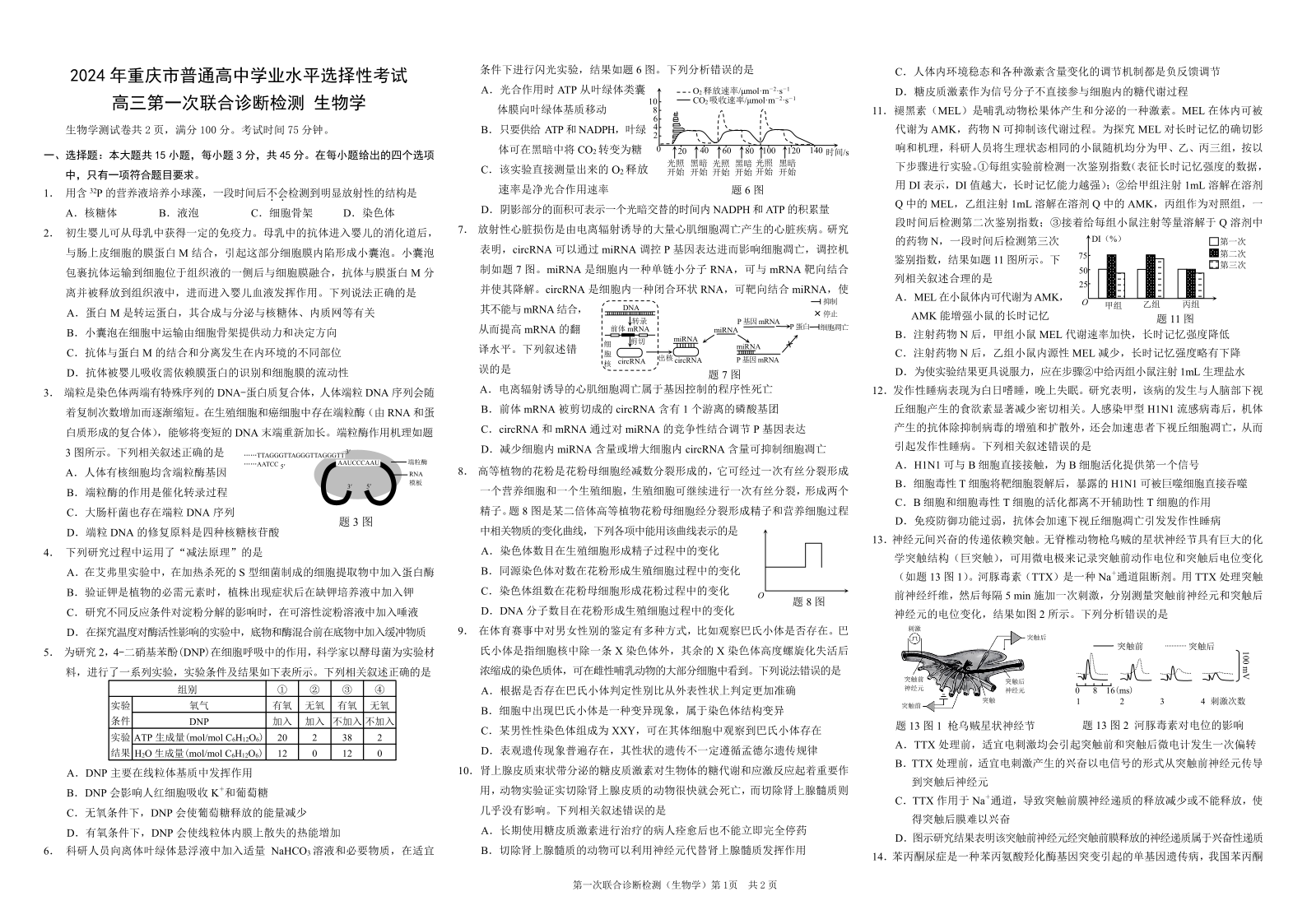 重庆一诊康德卷2024年普通高等学校招生全国统一考试高三第一次联合诊断检测生物