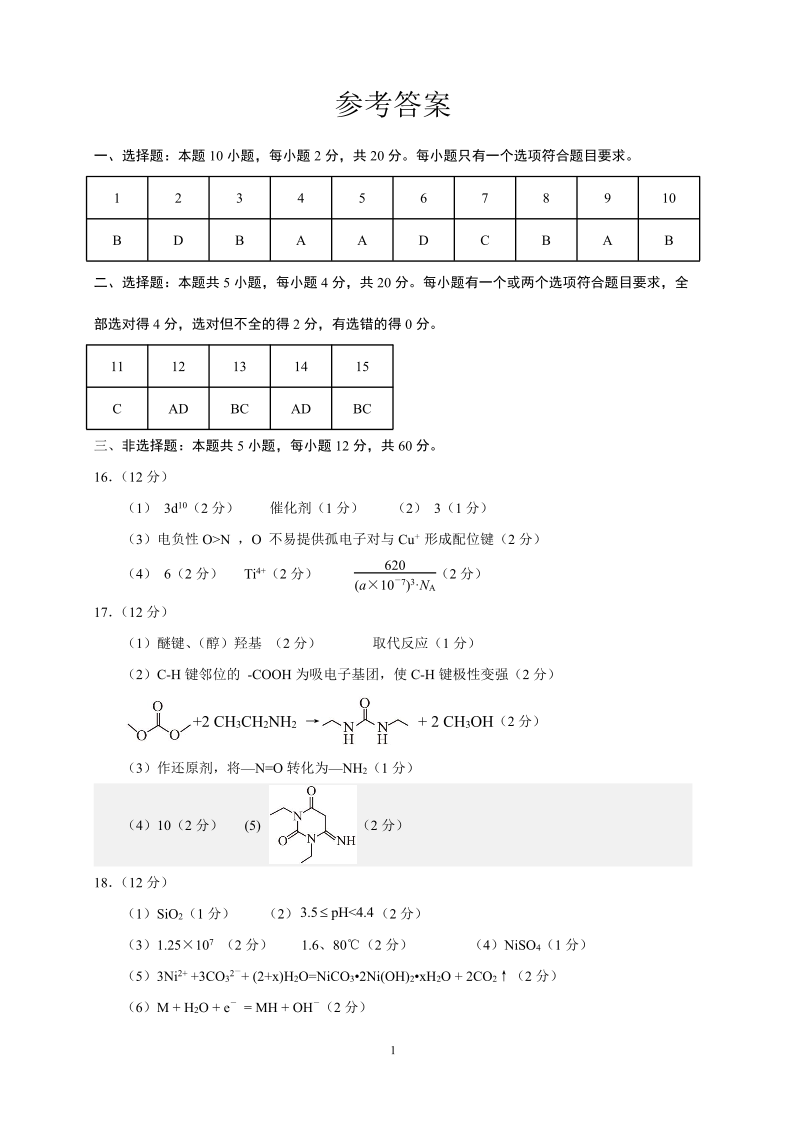 山东省东部2025届下学期6月高三考前热身化学答案
