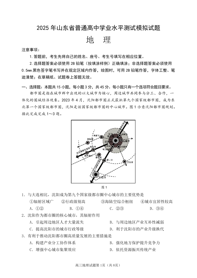 山东省东部2025届下学期6月高三考前热身地理