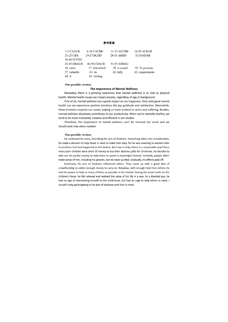 安徽省六安市2024届高三上学期期末教学质量检测英语答案